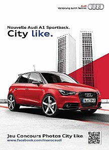 Audi Maroc développe sa présence sur les Réseaux Sociaux avec une campagne créative et inédite « City Like » à l'occasion du lancement de l'Audi A1 Sportback, la nouvelle citadine, design et pratique de la marque allemande.